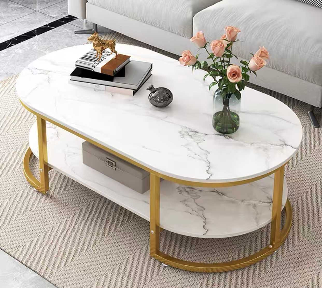 Τραπεζάκι σαλονιού διώροφο, σε μοντέρνο σχεδιασμό που θα προσδώσει πολυτέλεια και πρακτικότητα στο χώρο σας. Μεταλλικός σκελετός χάλυβα.Επιφάνεια MDF & λάκα με εφέ μαρμάρου.Διαστάσεις (Μ-Υ-Π): 120 x 65 x 45cm