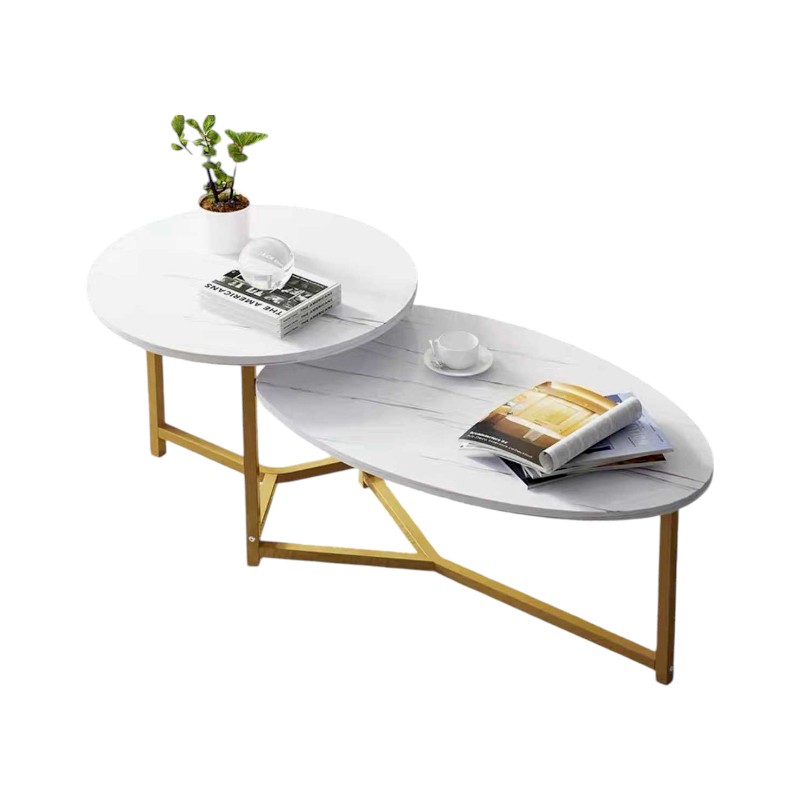 Τραπεζάκι σαλονιού διώροφο, σε μοντέρνο σχεδιασμό που θα προσδώσει πολυτέλεια και πρακτικότητα στο χώρο σας. Μεταλλικός σκελετός χάλυβα.Επιφάνεια MDF & λάκα με εφέ μαρμάρου.