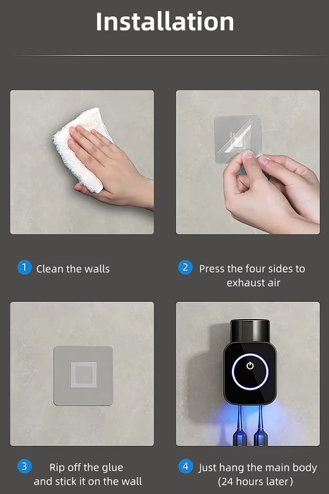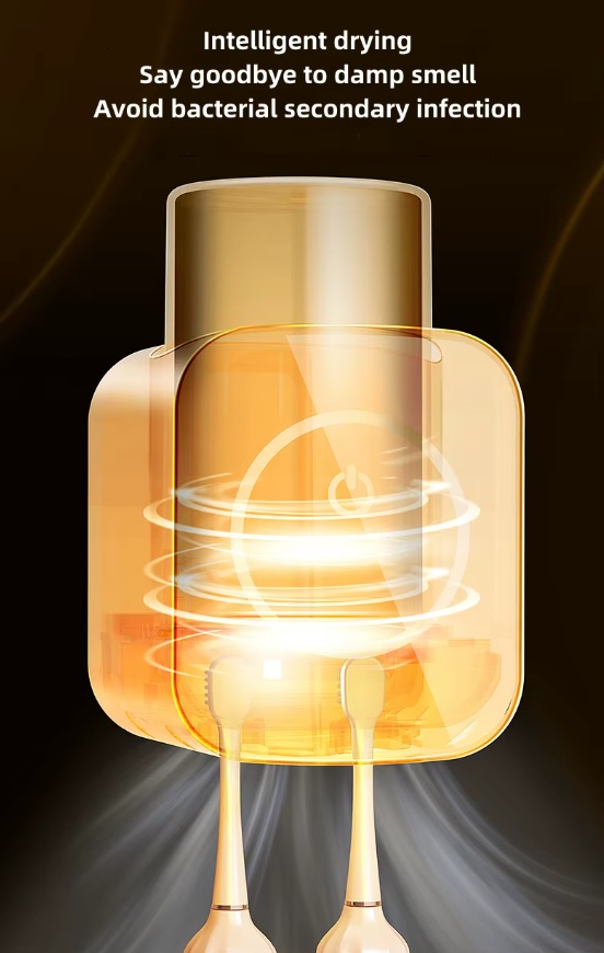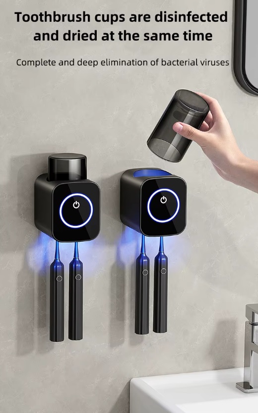 Πρωτοποριακή βάση αποστείρωσης οδοντόβουρτσας 2 θέσεων, επιτοίχια, σε μοντέρνο κομψό σχεδιασμό που μπορεί να ταιριάξει σε κάθε μπάνιο. Αποστειρώνει την οδοντόβουρτσά σας με την δύναμη του UV LED, σκοτώνοντας το 99% των βακτηρίων ενώ παράλληλα στεγνώνει πλήρως και σε ελάχιστο χρόνο την οδοντόβουρτσά σας χάρη στην τεχνολογία κυκλικού αέρα. Μπορεί ακόμη να χρησιμοποιηθεί ως απλή βάση στήριξης για τις οδοντόβουρτσές σας, εξοικονομώντας χώρο και προστατεύοντάς τες από την υγρασία και την ανάπτυξη βακτηρίων. Τοποθετείται στον τοίχο, με ισχυρή αυτοκόλλητη βάση, με κρεμαστράκι πάνω στο οποίο μπορείτε να τοποθετείτε και να αφαιρείτε τον αποστειρωτή πολύ εύκολα. Διαθέτει αφαιρούμενο και πλενόμενο καπάκι.Επαναφορτιζόμενος με ενσωματωμένη μπαταρία 1200mAh και καλώδιο φόρτισης Type-C (περιλαμβάνεται).Αυτονομία έως και 6 ώρες λειτουργίας. Διαστάσεις: 9.8 * 8.6 * 14 cm.
