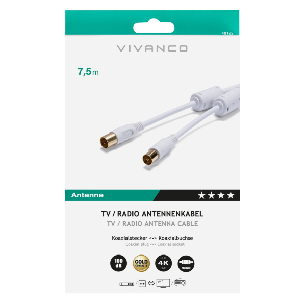 VIVANCO ANTENNA CABLE 100dB FERRITE 7.5m white