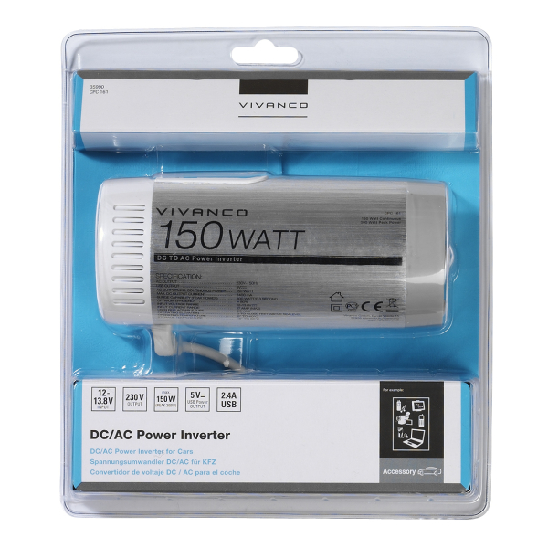 VIVANCO CAR VOLTAGE CONVERTER CHARGER USB 150W 12V/230V black