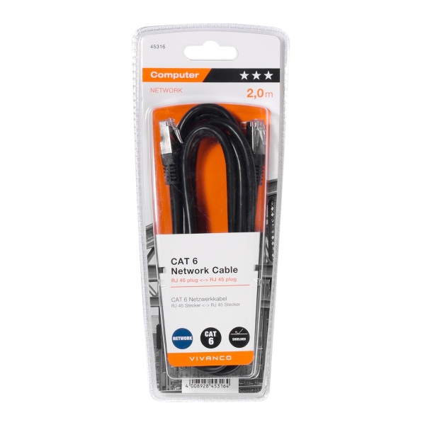 * CAT 6 * for linking PC to router/switch * suitable for gigabit networks * RJ45 plug RJ45 plug * twisted pair network cable, F/UTP * 1:1 connected * shielded cable * plug fully shielded