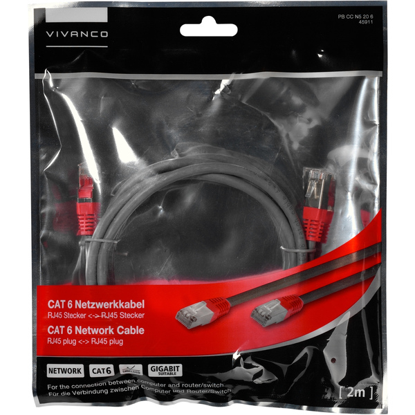* CAT 6 * for linking PC to router/switch * suitable for gigabit networks * RJ45 plug RJ45 plug * twisted pair network cable, F/UTP * 1:1 connected * shielded cable * plug fully shielded