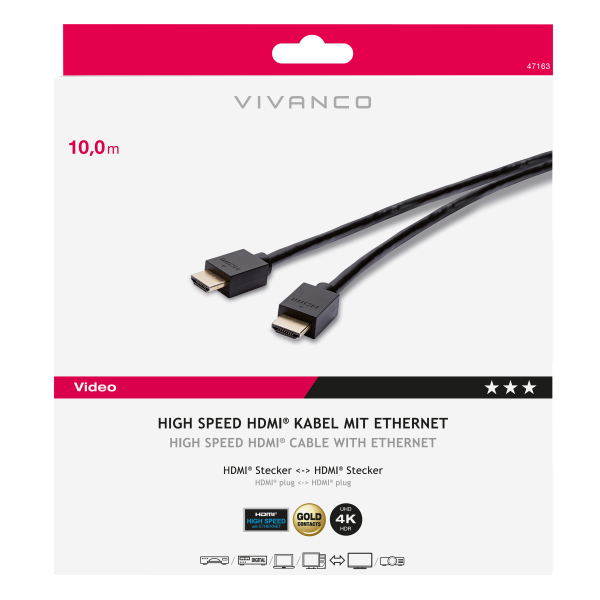 VIVANCO HDMI CABLE HDMI to HDMI with ETHERNET GOLD PLATED 10m