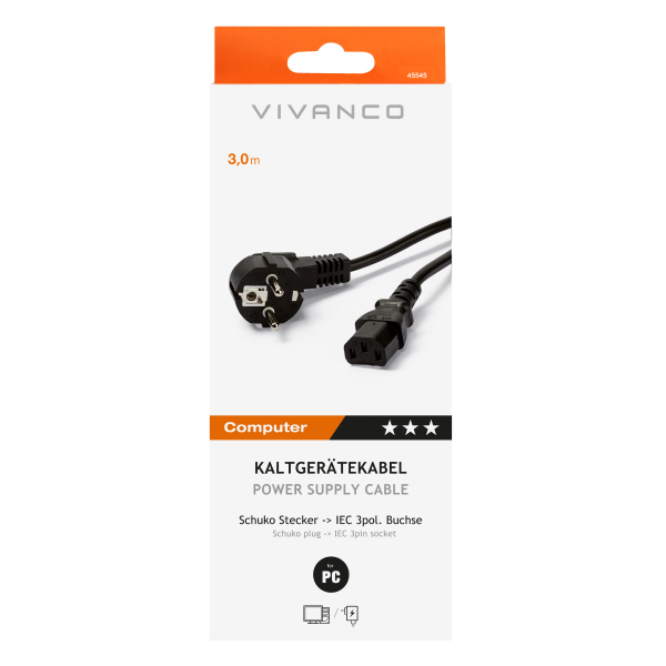 meters Power cord Schuko connector 3-pin IEC connector Length: 3 m