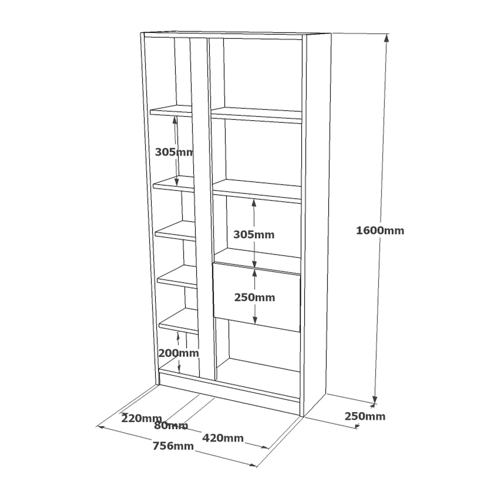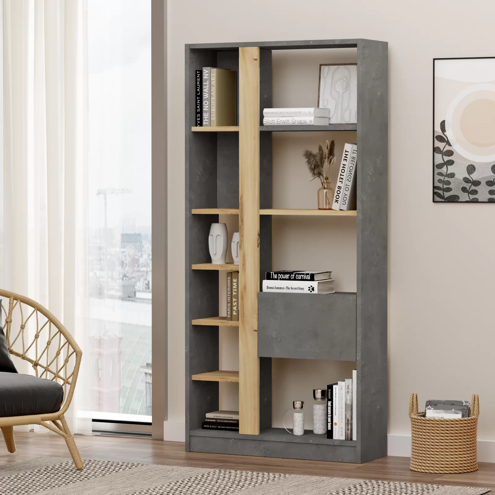 Βιβλιοθήκη “VIANA” σε χρώμα felt/γκρι 76x25x160