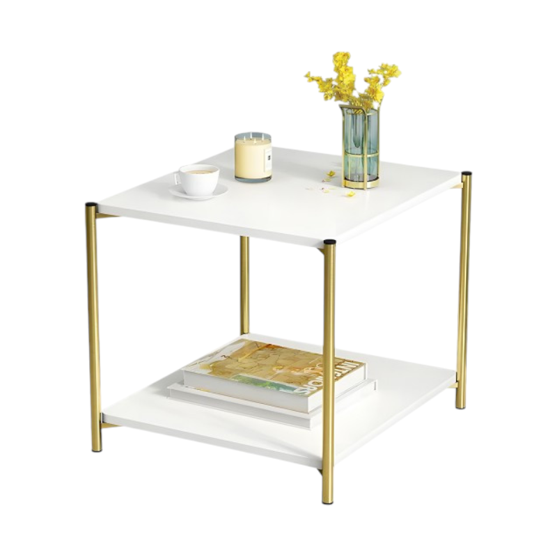 Βοηθητικό τραπεζάκι σαλονιού διώροφο, σε μοντέρνο σχεδιασμό που θα προσδώσει πολυτέλεια και πρακτικότητα στο χώρο σας. Μεταλλικός σκελετός χάλυβα.Επιφάνεια MDF & λάκα.Διαστάσεις: Ύψος: 43 cmΠλάτος: 40 x 40 cm