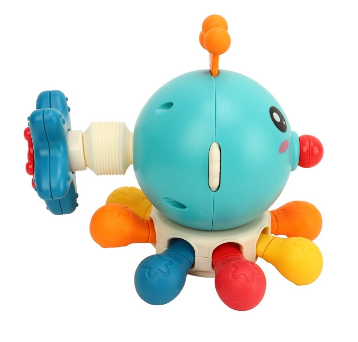 Βρεφικό παιχνίδι χταπόδι με κινούμενα πόδια και ήχους. Κατασκευασμένο από μαλακό πλαστικό υλικό, μη τοξικό και ασφαλές. Μπορεί να χρησιμοποιηθεί στο μπάνιο καθώς είναι πλήρως αδιάβροχο. Μπορεί να κάνει πολλαπλές κινήσεις όπως περιστροφή κεφαλιού, κίνηση και πίεση ποδιών, χειροκίνητη επέκταση του αστερία και τράβηγμα μύτης κτλ. Ένα εξαιρετικό παιχνίδι με πολλές δυνατότητες που θα εξασκήσει την λεπτή κινητικότητα του παιδιού και θα διατηρεί το ενδιαφέρον του ώρες.Διαστάσεις: 12 x 13cm.Πληροί όλα τα πρότυπα ασφαλείας. Κατάλληλο για παιδιά ηλικίας 10 μηνών και άνω.