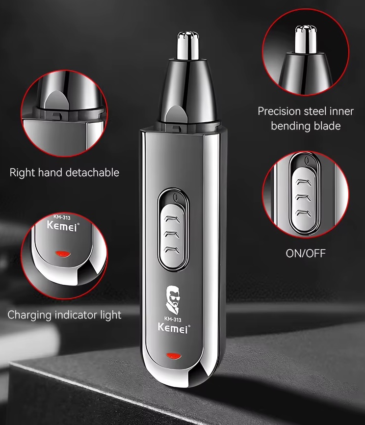 Εξαιρετικά πρακτικό εργαλείο ξυρίσματος και trimmer από την Kemei, με 3 διαφορετικές κεφαλές ειδικές για περιποίηση λεπτομερειών μαλλιών, φρυδιών, μύτης/αυτιών και κάθε δύσκολου σημείου προσώπου και σώματος. Μεγάλη αυτονομία μπαταρίας και εργονομικός σχεδιασμός για άνετη χρήση και εύκολη μεταφορά παντού.Χαρακτηριστικά: Ισχύς: 2W, Λεπίδες από ανοξείδωτο ατσάλι,Ταχύτητα: 6000RPMΕπαναφορτιζόμενη μπαταρία 600mAh, Χρόνος φόρτισης: 6 ώρες, Αυτονομία μπαταρίας: έως 60 λεπτά, Λυχνία ένδειξης φόρτισης, Αφαιρούμενες και πλενόμενες κεφαλές, Λειτουργία χαμηλού θορύβου, Διαστάσεις: 13 x 3 x 3 cmΠεριλαμβάνει: Κεφαλή περιποίησης μύτης/αυτιών, Κεφαλή ξυρίσματος, Κεφαλή Trimmer φρυδιών με χτενάκι, Καλώδιο φόρτισης,Βουρτσάκι καθαρισμού.